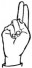 На ћирилици написано МАРИЈА ВЕЛИМИРОВ састоји се из 15 слова [?]. Исписано ћириличном једноручном азбуком за глувонеме: